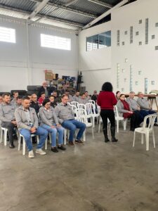 Ao longo da semana, os colaboradores participaram de uma palestra sobre a influência do riso no bem-estar, com dinâmicas interativas que trouxeram leveza e reflexão ao cotidiano. Também houve a oportunidade de realizar um curso on-line sobre segurança e saúde no transporte de cargas, reforçando a importância da atualização profissional.